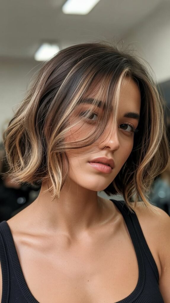 2. Caramel Choppy Bob with Face-Framing Highlights