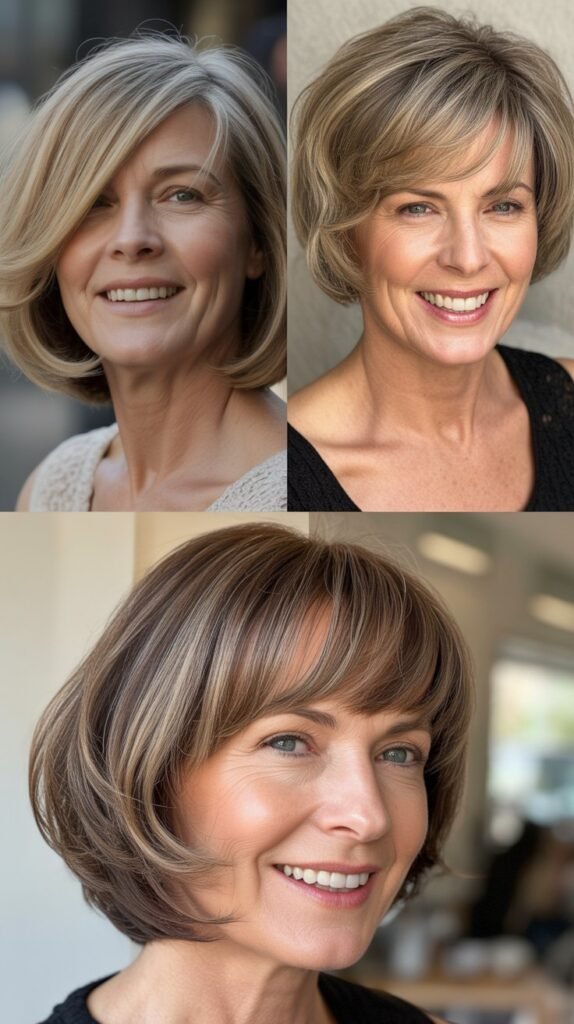 From wispy curtain bangs to bold blunt cuts, each style in this collection has been selected to enhance natural beauty, work with changing hair textures, and align with current fashion trends that respect the unique needs of women over 50.