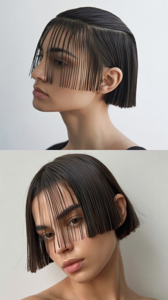 - This double-blunt effect makes a powerful visual statement and requires confidence to pull off effectively.