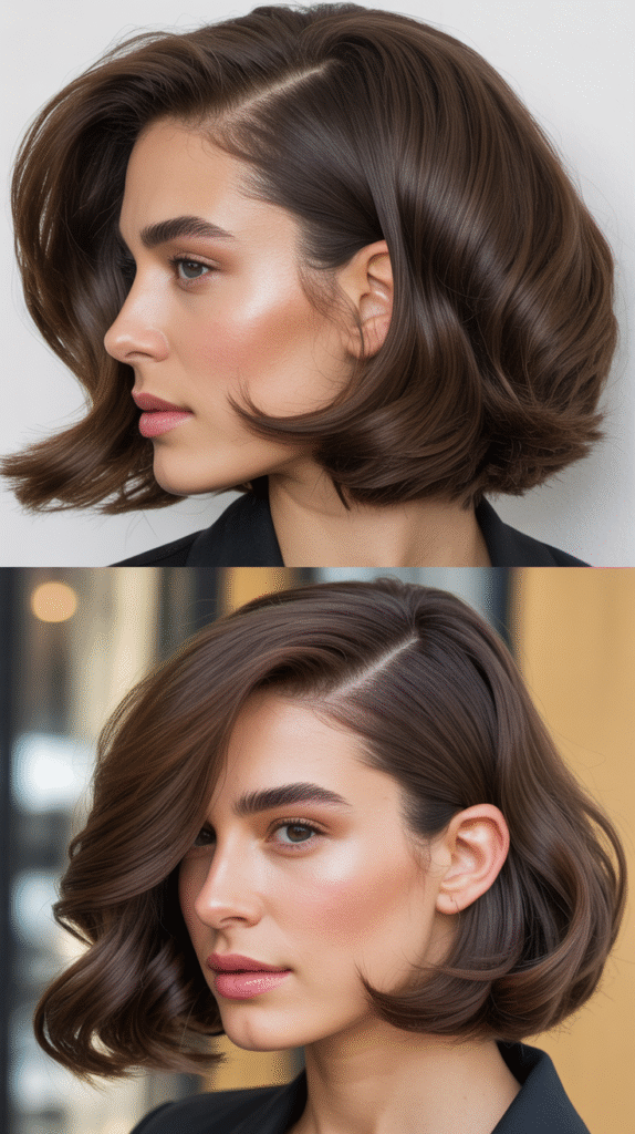 - The blunt lob provides enough length for ponytails and buns while maintaining a polished, intentional appearance.